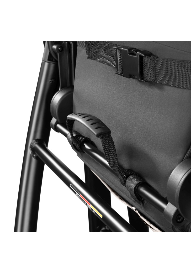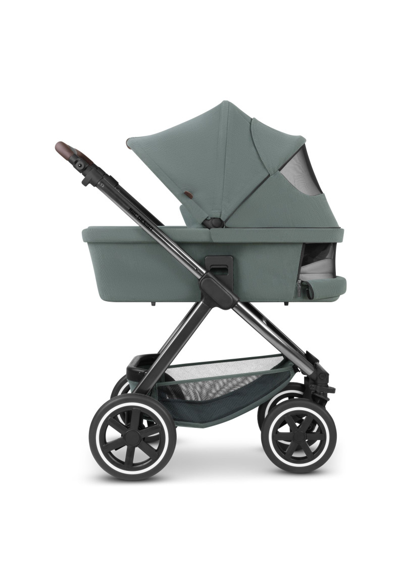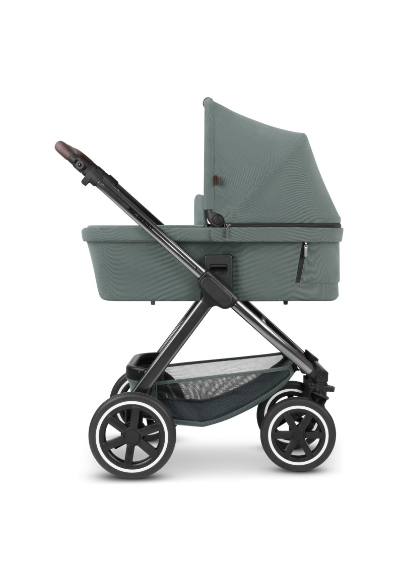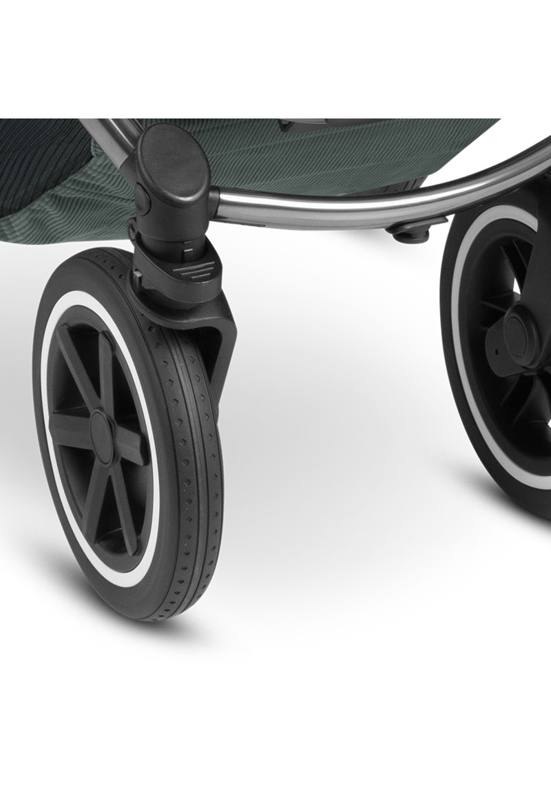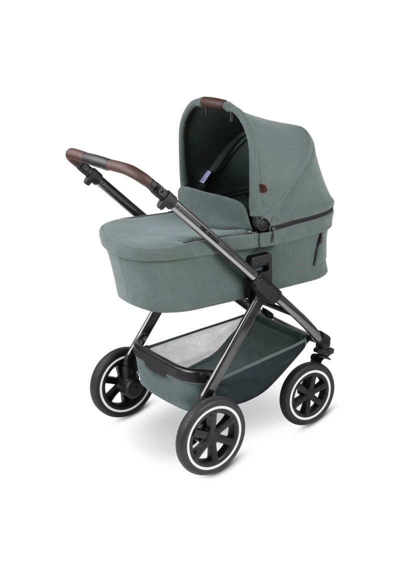 Neatkarīgi no tā, vai pastaigājaties pa ietvēm pilsētā, izpētot parku vai dodoties uz laukiem, kompaktie ABC Design Samba ratiņi var iekarot jebkuru virsmu. Augstas kvalitātes lodīšu gultņi, integrēta piekare un necaurdurami gaisa kameras riteņi piedāvā gan jums, gan jūsu bērnam maksimālu komfortu un īpaši gludu braukšanu. Sēdekli, kurā ir ratiņi, var novietot uz rāmja ar vienu klikšķi, un pēc tam, kad jūsu mazais pētnieks ir noguris, atklājot pasauli, jūs varat pielāgot atzveltni un kāju balstu, lai viņi varētu atpūsties pēc vēlēšanās. Pielāgojiet to savām vajadzībām: stumšanas stieņa augstumu var viegli pielāgot, lai tas atbilstu katram vecākam. Gudri: stāvbremze atrodas tieši uz labā aizmugurējā riteņa, tāpēc nav aizmugurējās ass. Tas ietaupa svaru un vietu, kā arī atvieglo ratiņu stumšanu vienlaikus. Samba ratiņiem ir pieejama arī papildu kulbiņa, lai jūs varētu paņemt līdzi savu mazo dārgumu no dzimšanas. Un, ja tas ir jātransportē, Samba salokās, lai kļūtu ļoti kompakta izmēra, tāpēc tas aizņem maz vietas jūsu automašīnas bagāžniekā, un jūs varat to bez problēmām ņemt līdzi autobusā vai vilcienā. Vai arī, ja jūs steidzaties, varat to pat ātri nolocīt, kad sēdeklis joprojām ir piestiprināts — neatkarīgi no tā, vai tas ir vērsts atpakaļ vai uz priekšu. Labi pārdomāta sistēma: adapteri ir pieejami kā papildu aprīkojums, lai jūs varētu viegli piestiprināt zīdaiņa automašīnas sēdeklīti pie ratiņiem un pārveidot to par ceļojumu sistēmu. Pateicoties integrētajam ABC Design universālajam stiprinājumam, jums ir vieta ratiņos, kur ar vienu klikšķi uzglabāt visus piederumus, piemēram, autiņbiksīšu somu, glāžu turētāju vai lukturīti. Ar stāvbremzi, 5 punktu drošības jostu sistēmu, transportēšanas bloķēšanu un noņemamiem riteņiem šie ratiņi ļaus jums optimāli droši slīdēt pāri kalniem un daivām, lai kur jūs arī aizvestu piedzīvojums.