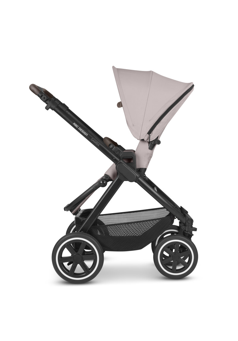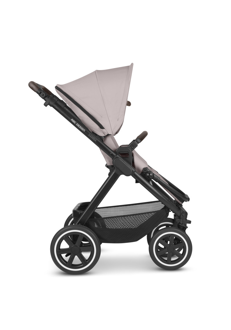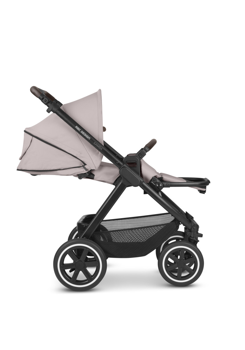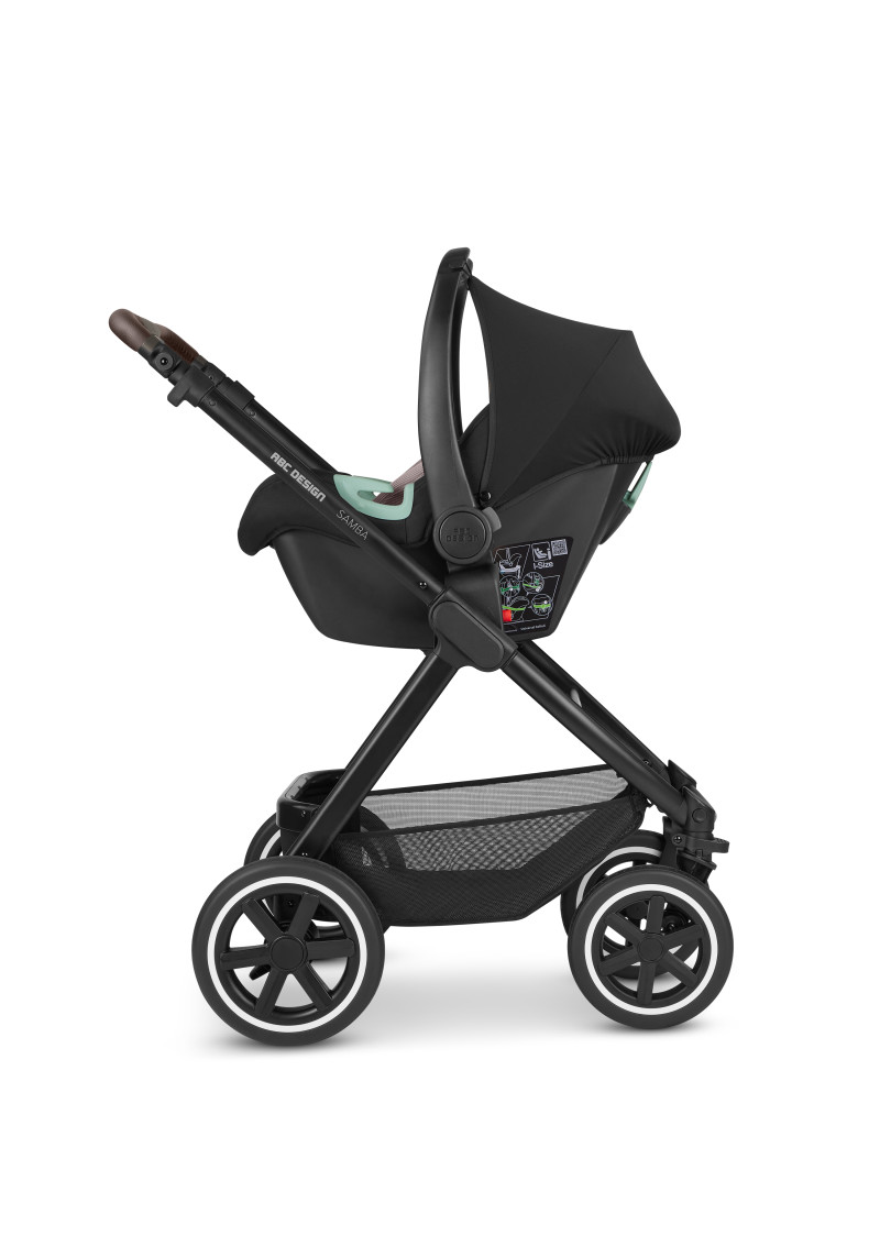 Neatkarīgi no tā, vai pastaigājaties pa ietvēm pilsētā, izpētot parku vai dodoties uz laukiem, kompaktie ABC Design Samba ratiņi var iekarot jebkuru virsmu. Augstas kvalitātes lodīšu gultņi, integrēta piekare un necaurdurami gaisa kameras riteņi piedāvā gan jums, gan jūsu bērnam maksimālu komfortu un īpaši gludu braukšanu. Sēdekli, kurā ir ratiņi, var novietot uz rāmja ar vienu klikšķi, un pēc tam, kad jūsu mazais pētnieks ir noguris, atklājot pasauli, jūs varat pielāgot atzveltni un kāju balstu, lai viņi varētu atpūsties pēc vēlēšanās. Pielāgojiet to savām vajadzībām: stumšanas stieņa augstumu var viegli pielāgot, lai tas atbilstu katram vecākam. Gudri: stāvbremze atrodas tieši uz labā aizmugurējā riteņa, tāpēc nav aizmugurējās ass. Tas ietaupa svaru un vietu, kā arī atvieglo ratiņu stumšanu vienlaikus. Samba ratiņiem ir pieejama arī papildu kulbiņa, lai jūs varētu paņemt līdzi savu mazo dārgumu no dzimšanas. Un, ja tas ir jātransportē, Samba salokās, lai kļūtu ļoti kompakta izmēra, tāpēc tas aizņem maz vietas jūsu automašīnas bagāžniekā, un jūs varat to bez problēmām ņemt līdzi autobusā vai vilcienā. Vai arī, ja jūs steidzaties, varat to pat ātri nolocīt, kad sēdeklis joprojām ir piestiprināts — neatkarīgi no tā, vai tas ir vērsts atpakaļ vai uz priekšu. Labi pārdomāta sistēma: adapteri ir pieejami kā papildu aprīkojums, lai jūs varētu viegli piestiprināt zīdaiņa automašīnas sēdeklīti pie ratiņiem un pārveidot to par ceļojumu sistēmu. Pateicoties integrētajam ABC Design universālajam stiprinājumam, jums ir vieta ratiņos, kur ar vienu klikšķi uzglabāt visus piederumus, piemēram, autiņbiksīšu somu, glāžu turētāju vai lukturīti. Ar stāvbremzi, 5 punktu drošības jostu sistēmu, transportēšanas bloķēšanu un noņemamiem riteņiem šie ratiņi ļaus jums optimāli droši slīdēt pāri kalniem un daivām, lai kur jūs arī aizvestu piedzīvojums.
