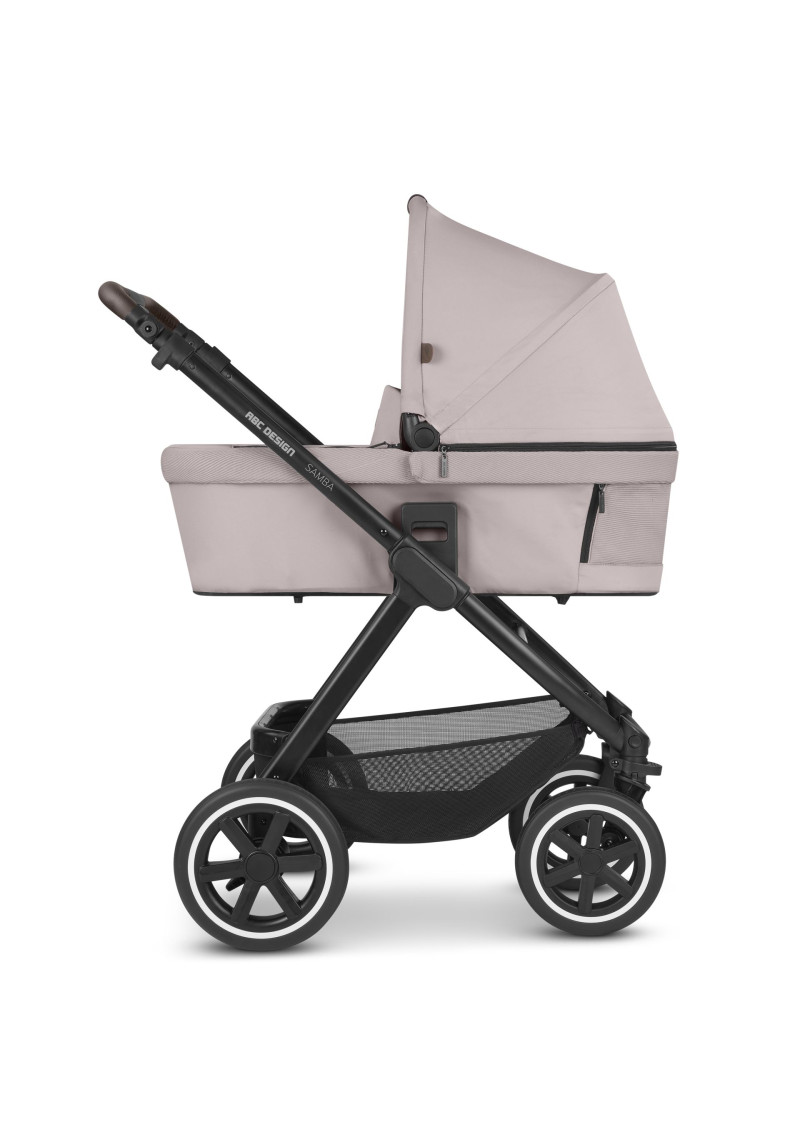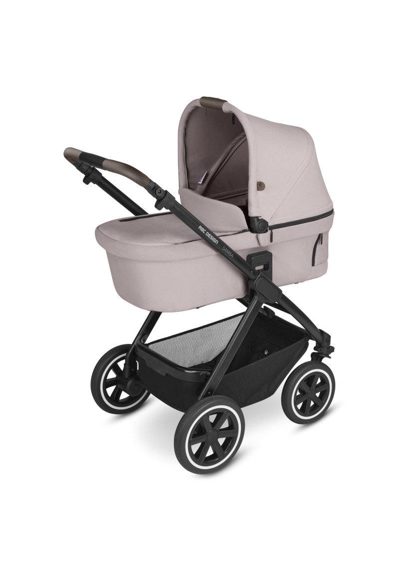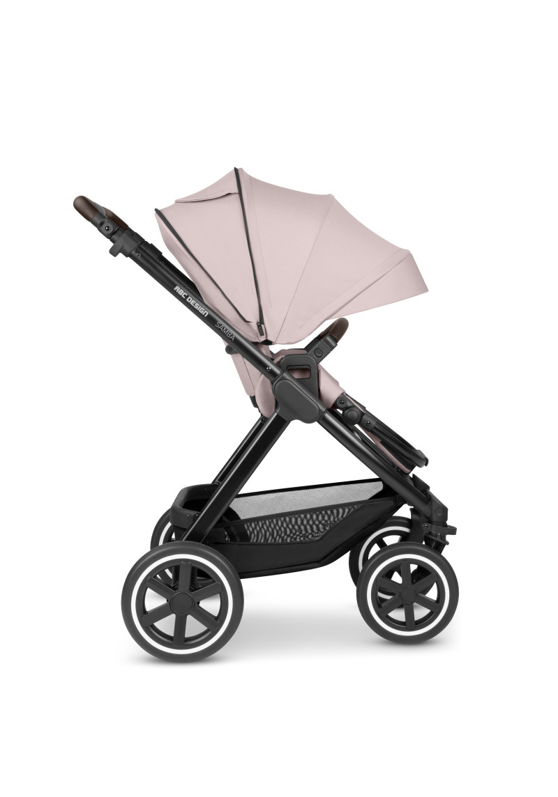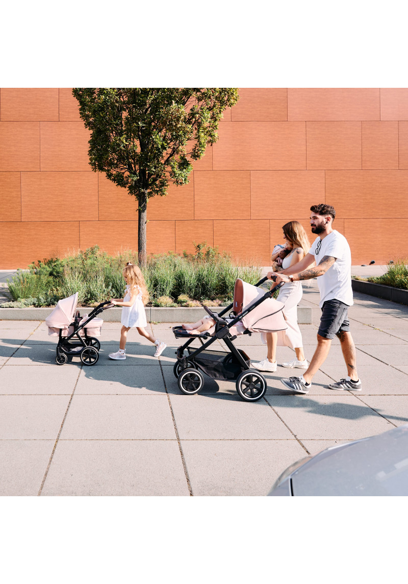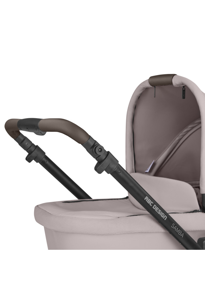 Neatkarīgi no tā, vai pastaigājaties pa ietvēm pilsētā, izpētot parku vai dodoties uz laukiem, kompaktie ABC Design Samba ratiņi var iekarot jebkuru virsmu. Augstas kvalitātes lodīšu gultņi, integrēta piekare un necaurdurami gaisa kameras riteņi piedāvā gan jums, gan jūsu bērnam maksimālu komfortu un īpaši gludu braukšanu. Sēdekli, kurā ir ratiņi, var novietot uz rāmja ar vienu klikšķi, un pēc tam, kad jūsu mazais pētnieks ir noguris, atklājot pasauli, jūs varat pielāgot atzveltni un kāju balstu, lai viņi varētu atpūsties pēc vēlēšanās. Pielāgojiet to savām vajadzībām: stumšanas stieņa augstumu var viegli pielāgot, lai tas atbilstu katram vecākam. Gudri: stāvbremze atrodas tieši uz labā aizmugurējā riteņa, tāpēc nav aizmugurējās ass. Tas ietaupa svaru un vietu, kā arī atvieglo ratiņu stumšanu vienlaikus. Samba ratiņiem ir pieejama arī papildu kulbiņa, lai jūs varētu paņemt līdzi savu mazo dārgumu no dzimšanas. Un, ja tas ir jātransportē, Samba salokās, lai kļūtu ļoti kompakta izmēra, tāpēc tas aizņem maz vietas jūsu automašīnas bagāžniekā, un jūs varat to bez problēmām ņemt līdzi autobusā vai vilcienā. Vai arī, ja jūs steidzaties, varat to pat ātri nolocīt, kad sēdeklis joprojām ir piestiprināts — neatkarīgi no tā, vai tas ir vērsts atpakaļ vai uz priekšu. Labi pārdomāta sistēma: adapteri ir pieejami kā papildu aprīkojums, lai jūs varētu viegli piestiprināt zīdaiņa automašīnas sēdeklīti pie ratiņiem un pārveidot to par ceļojumu sistēmu. Pateicoties integrētajam ABC Design universālajam stiprinājumam, jums ir vieta ratiņos, kur ar vienu klikšķi uzglabāt visus piederumus, piemēram, autiņbiksīšu somu, glāžu turētāju vai lukturīti. Ar stāvbremzi, 5 punktu drošības jostu sistēmu, transportēšanas bloķēšanu un noņemamiem riteņiem šie ratiņi ļaus jums optimāli droši slīdēt pāri kalniem un daivām, lai kur jūs arī aizvestu piedzīvojums.
