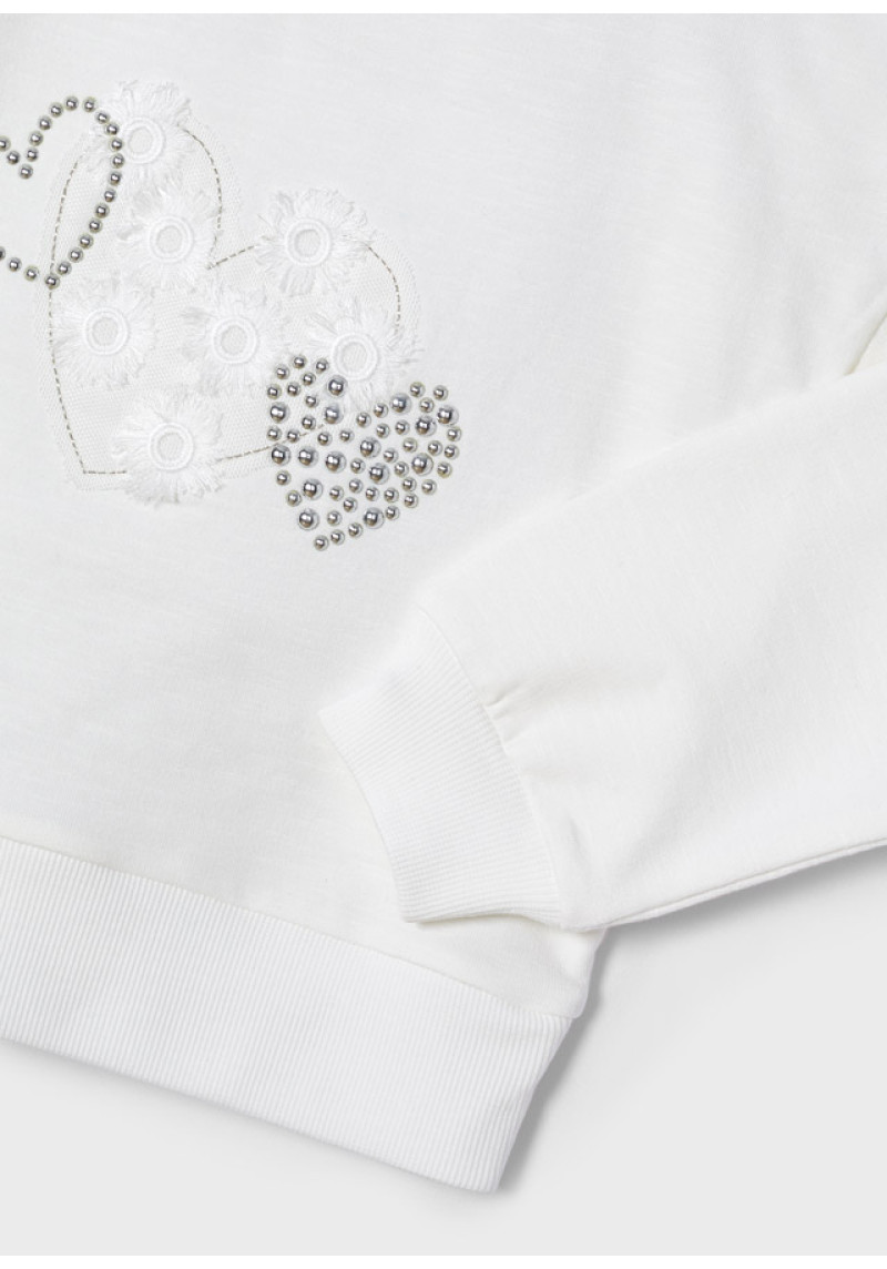 Jūsu iepirkumu grozs ir tukšs! MAYORAL Kokvilnas balts džemperis ar aplikāciju