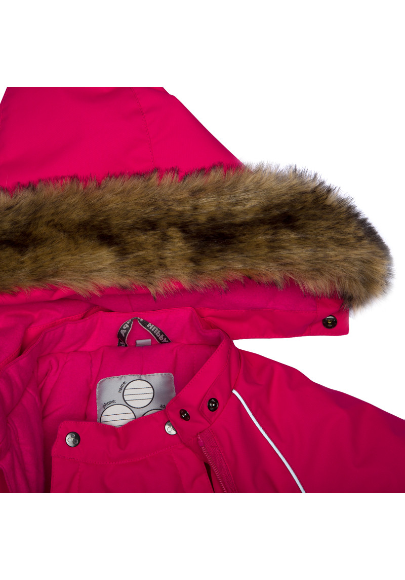 Bērnu ūdensnecaurlaidīgs un vēja necaurlaidīgs kombinezons. Elpojošs audums. Piemērots gan zīdaiņiem, gan maziem bērniem, kuri jau prot staigāt. Iekšpusē jauka un mīksta flaneļa odere. Integrēta elastīga lente piedurkņu un kāju galos. Noņemama kapuce, kas piestiprināma pie apkakles ar spiedpogām, lai nodrošinātu drošību, ja valkātājs iestrēgst. Piedurkņu un kāju galus var ērti nolocīt 68.–80. izmēros. Ūdensnecaurlaidīgas līmētas vīles. Kombinezonam nav iekšējo kāju vīļu. Elastīgas pēdu siksnas. Noņemama mākslīgās kažokādas apdare uz kapuces. Atstarojoši elementi uz auduma nodrošina drošību valkājot tumsā. Art.31920030-00063