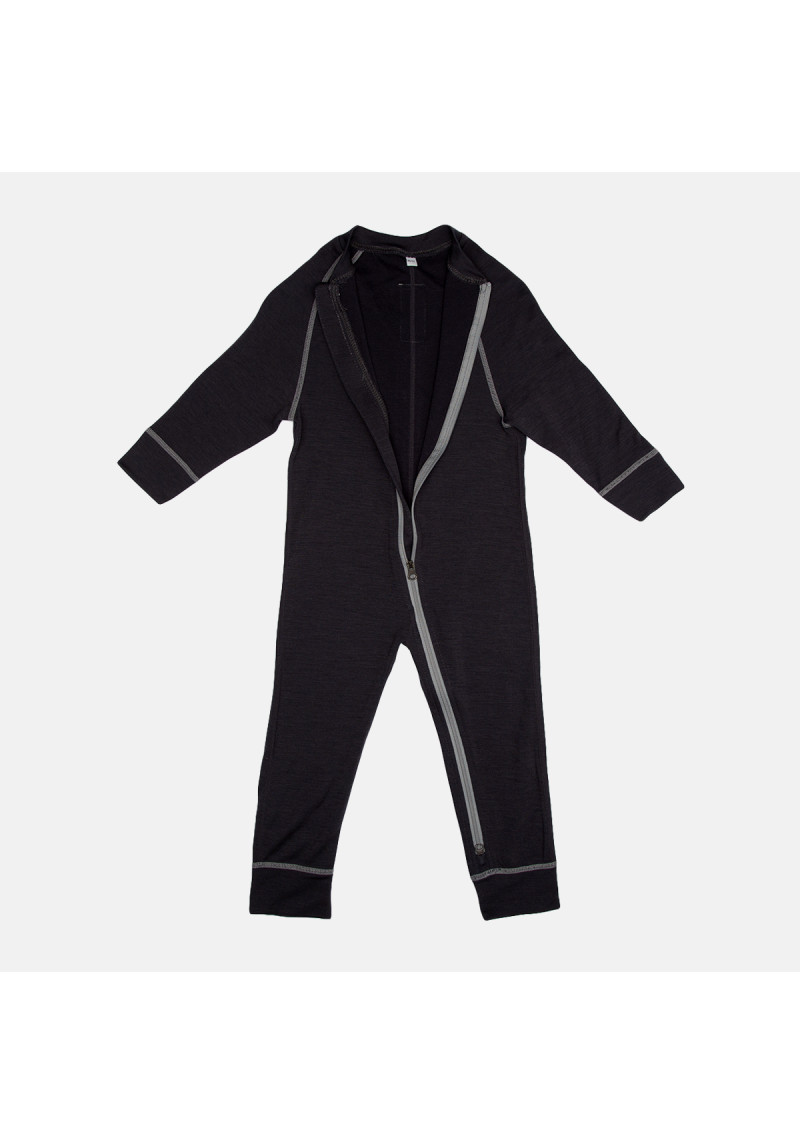 Mazuļu kombinezons no merino vilnas SAMI, tumši pelēks Bērnu merino vilnas un bambusa sniega kombinezons mazuļiem. Mīksts merino vilnas ārējais slānis. Ādai draudzīgs bambuss iekšpusē. Materiāls absorbē mitrumu un silda vai atdzesē atkarībā no ķermeņa temperatūras. Piemērots jutīgai ādai. Art.34010000-00018