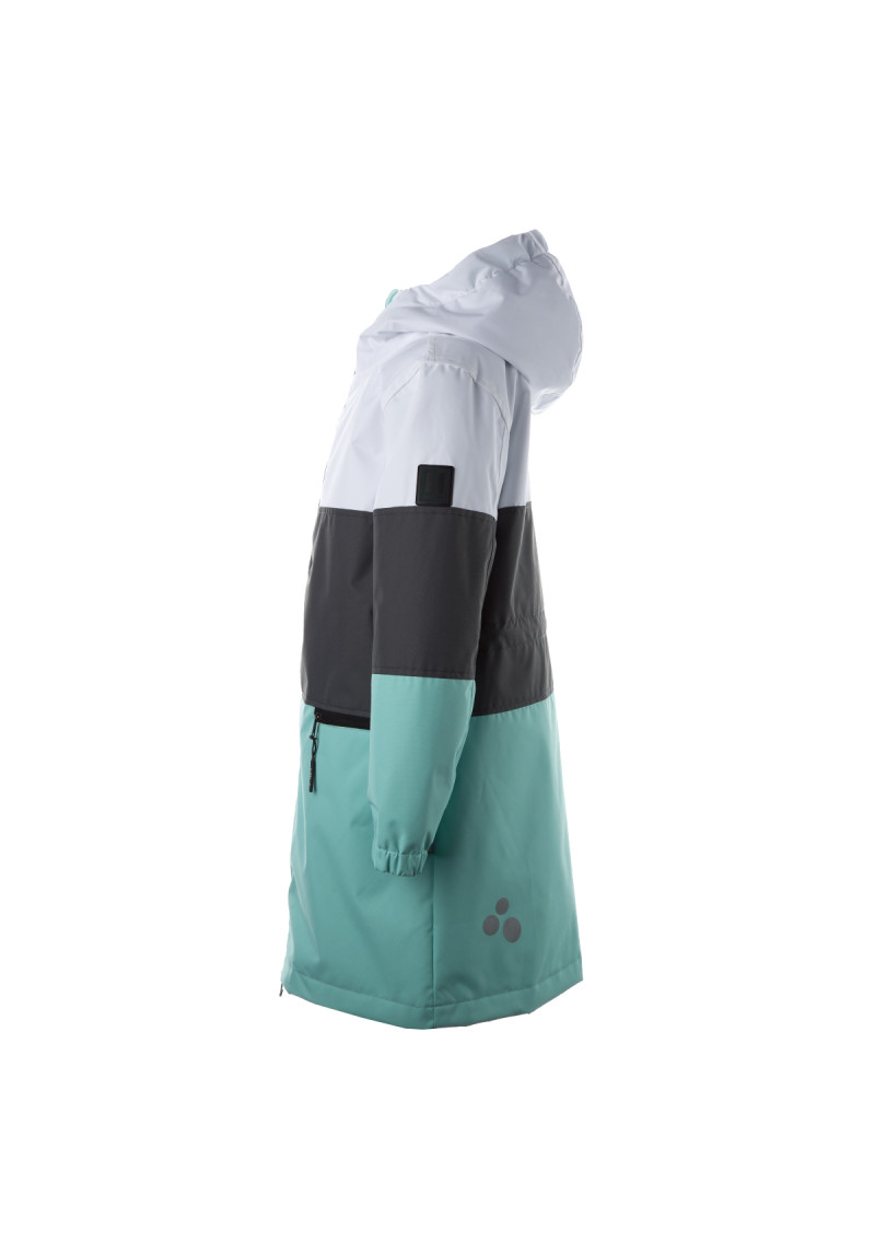 Siltināta (40g) ūdens un vēja necaurlaidīga parka meitenēm, piemērota pavasarim un rudenim. Parkas virsējais slānis ir izgatavots no elpojoša materiāla. Tam ir mīksta odere un aukliņa kapucei. Parkai ir elastīgas piedurkņu aproces un regulējams viduklis. Tai ir ūdensnecaurlaidīgas, aplīmētas šuves, un tā ir dekorēta ar atstarojošām detaļām.