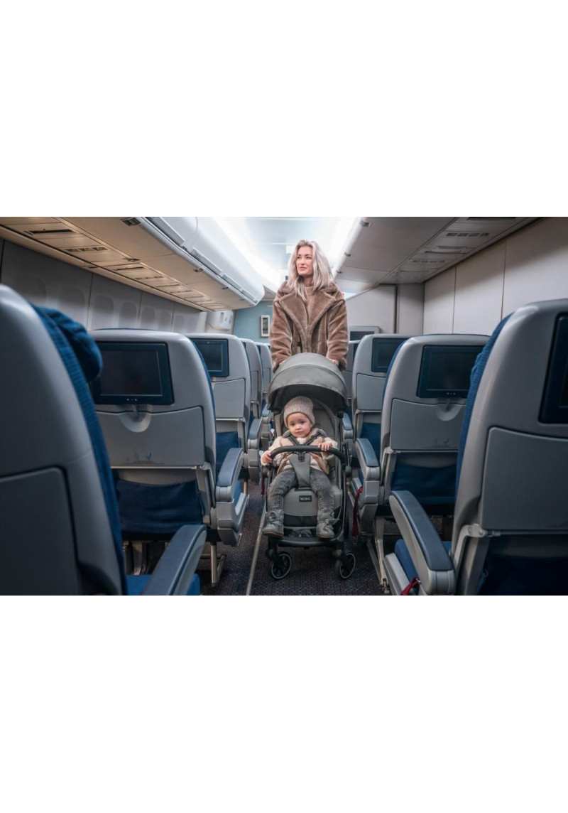 - Komplektācijā iekļauts saules aizsargs UV50+, drošības stienis un ceļojumu soma