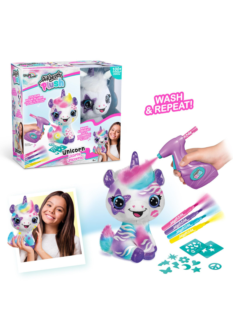 Izdekorē savu plīša rotaļlietu ar marķieriem, aerogrāfu un trafaretiem. Nomazgā savu plīša rotaļlietu un atkārto to vēlreiz! AIRBRUSH Art.228CL