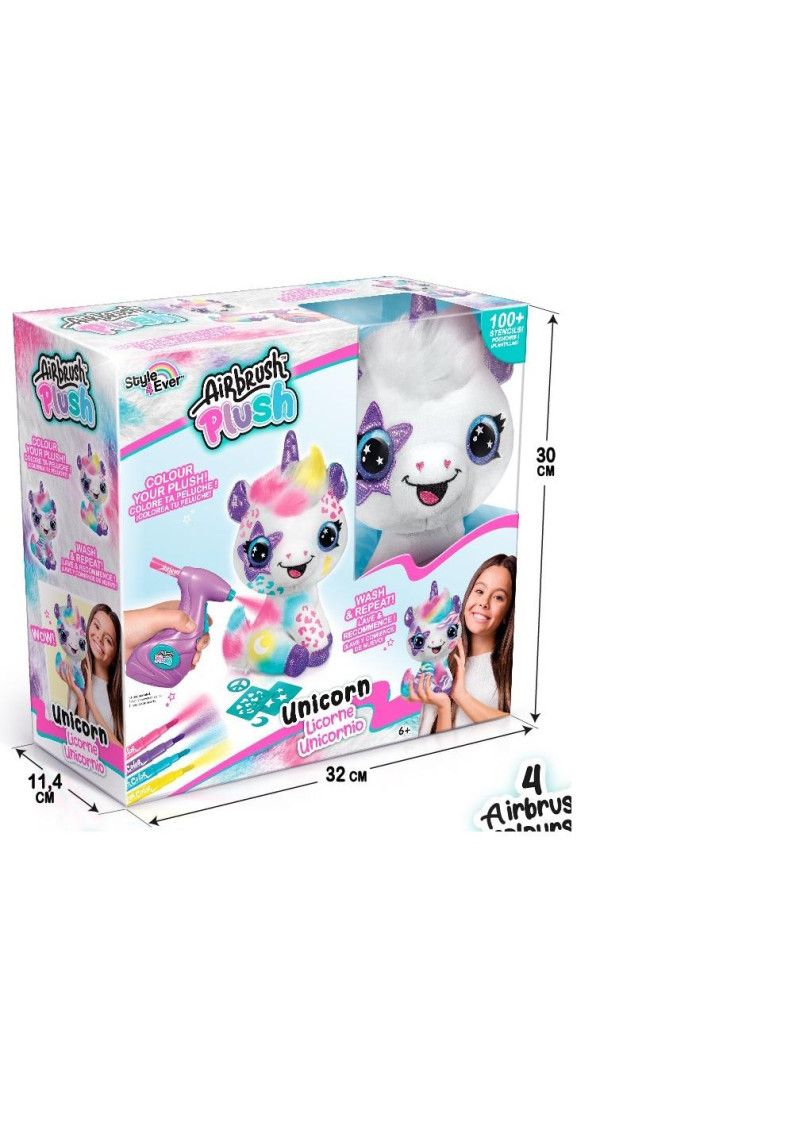 AIRBRUSH PLUSH Plīša DIY komplekts Vienradzis ar aerogrāfu, 25 cm