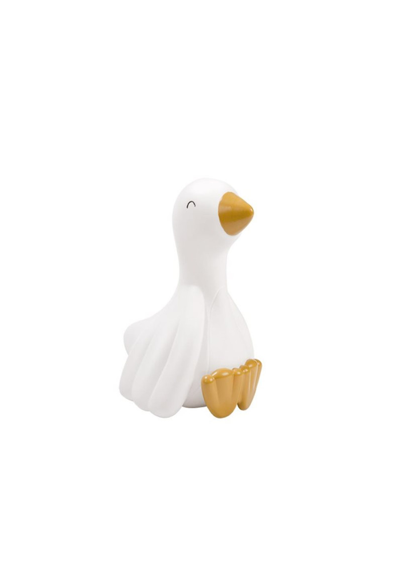Ir pienācis gulētiešanas laiks! Ļaujiet Mazajai Zosiņai spīdēt savu nomierinošo gaismu bērnistabā, un jūsu mazais ātri vien dosies uz sapņu zemi. Šī zoss formas naktslampiņa sniedz jūsu bērnam drošības un komforta sajūtu, lai viņš varētu mierīgi aizmigt. Bezvadu LED naktslampiņa lieliski izskatīsies jebkurā bērnu istabā ar savu maigo (neregulējamo) gaismu un laipno izskatu. Un tas var būt noderīgi, ja vēlaties izveidot gulētiešanas rutīnu. ar labunakti! Gaisma automātiski izslēdzas pēc 12 minūtēm, lai taupītu baterijas. Komplektā ietilpst trīs mazas pogas LR44 baterijas 1,5 V.
