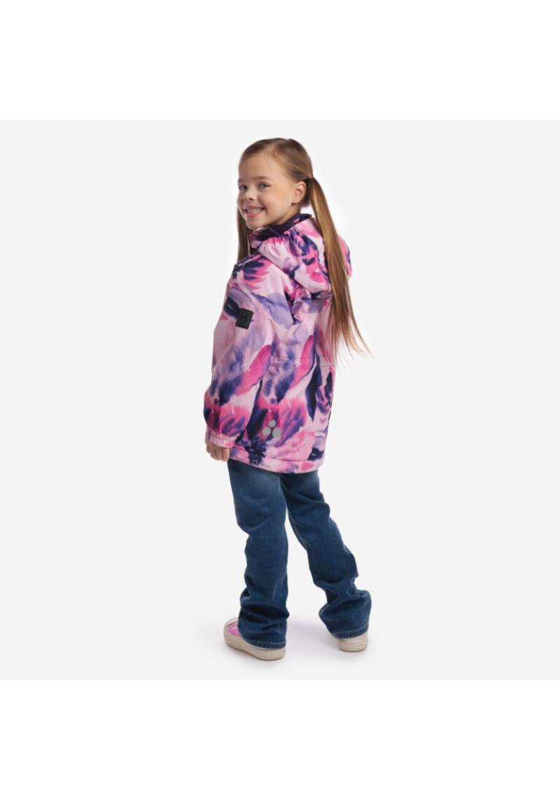 Bērnu ūdensnecaurlaidīga un vēja necaurlaidīga pavasara/rudens jaka ar 80g siltinājumu. Elpojošs virsējais audums. Kapuces malā iestrādāta gumijas lente. Noņemama kapuce piestiprinās pie apkakles ar spiedpogām. Gumijas lentes tunelis ar aizbāžņiem apakšā. Kabatas ar rāvējslēdzējiem. Atstarojošas detaļas uz virsējā auduma.